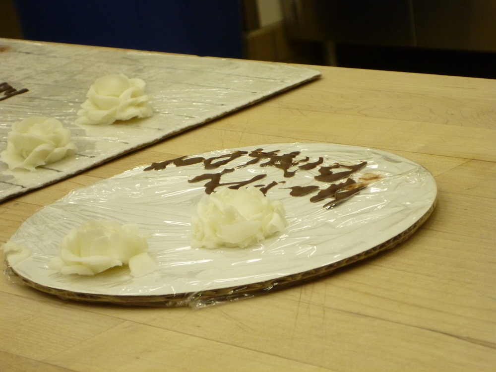 Finally, chef demoed what we will need to do for decoration on our practical cake tomorrow. The roses can be any color, and the writting can be in either print or cursive.